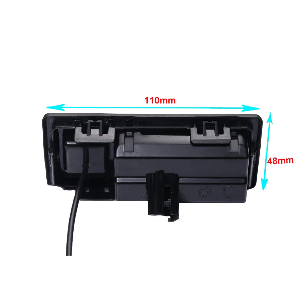 Rear-view camera designed for Audi, Skoda, and VW models, fitting perfectly in the original trunk handle location.