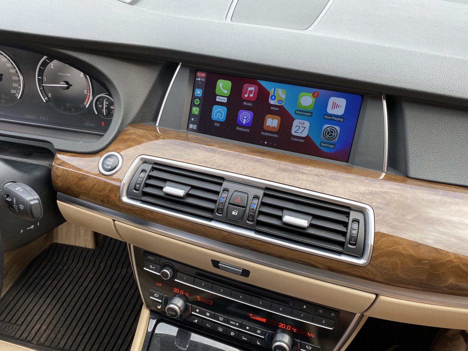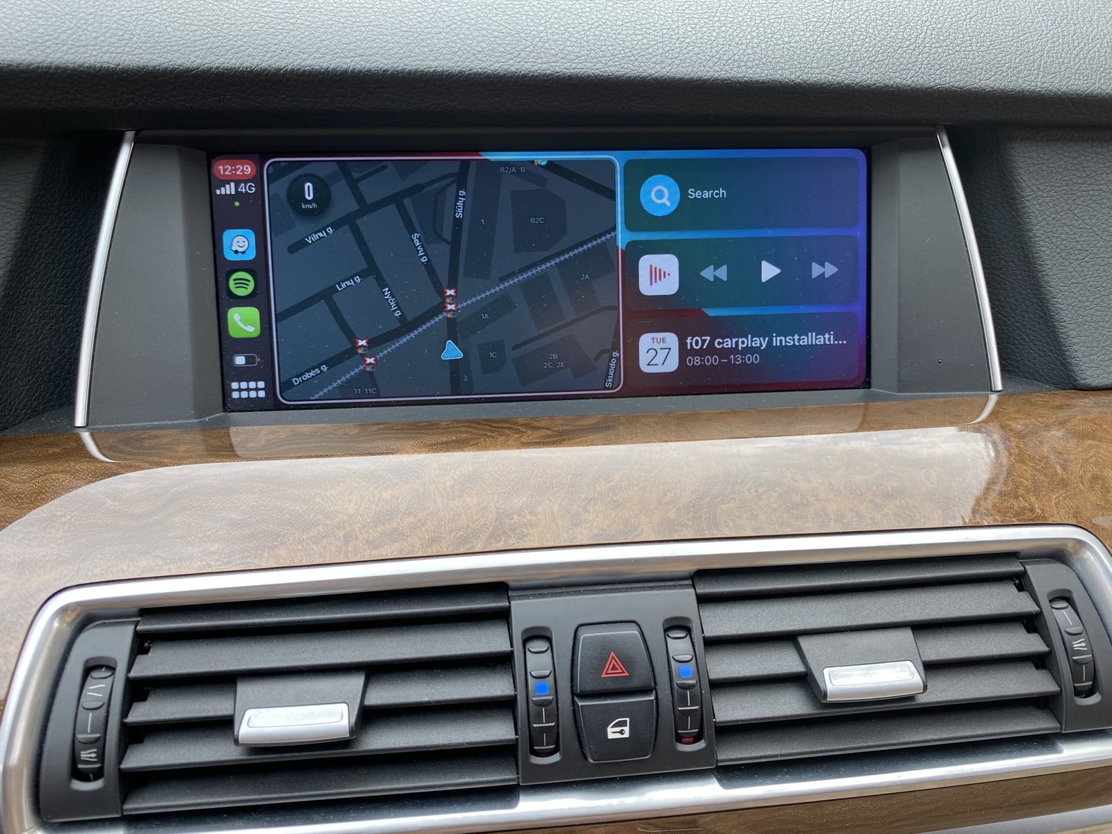 Once installed, Apple CarPlay and Android Auto are displayed directly on the original factory screen, transforming the OEM infotainment system into a fully integrated smartphone interface. Drivers can safely access real-time GPS navigation, music streaming, messaging, and hands-free phone calls directly from the vehicle display while their phone remains stored out of sight. Popular smartphone apps such as Google Maps, Waze, Apple Maps, Spotify, Apple Music, WhatsApp, Podcasts, and many other navigation and digital media services operate smoothly through the original infotainment controls, iDrive system, and steering wheel buttons for intuitive and distraction-free operation while driving.