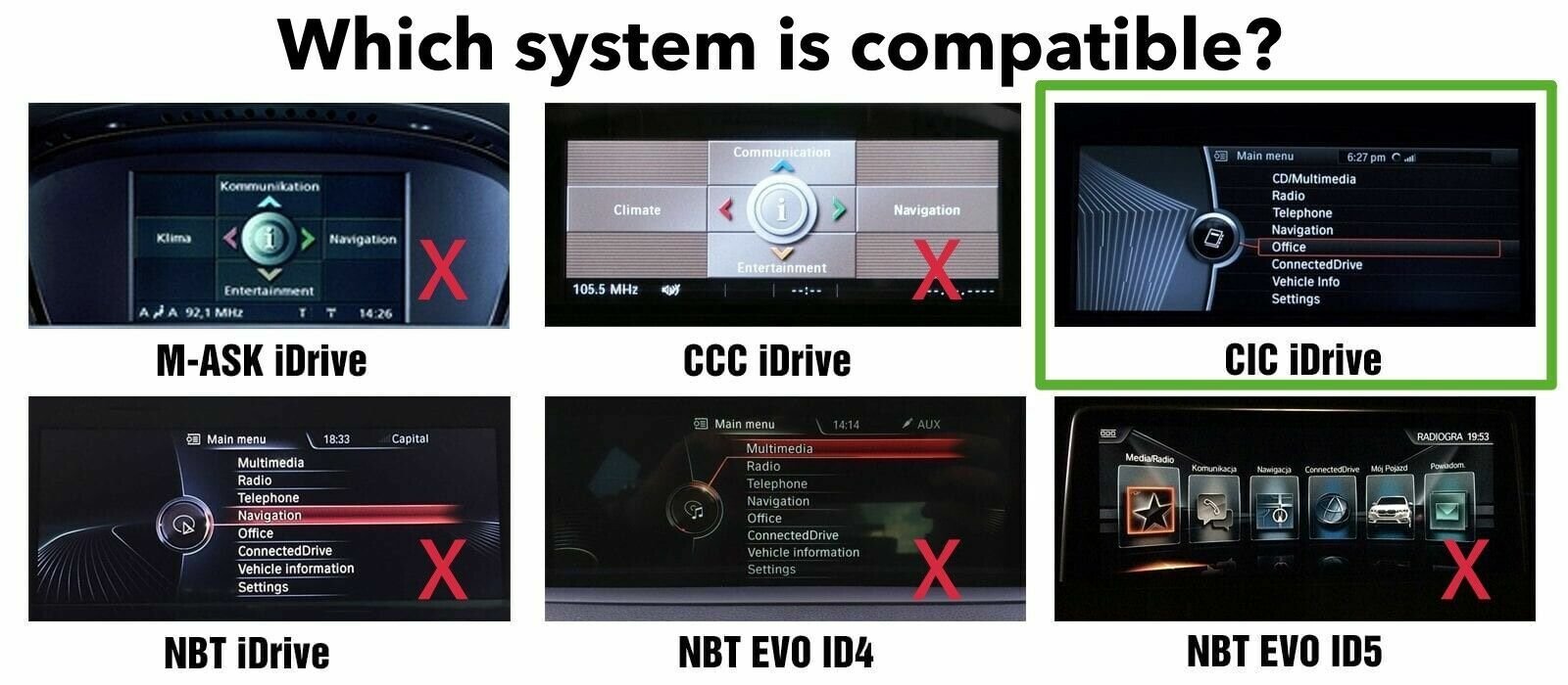 BMW CIC Multimedia Upgrade – adds Apple CarPlay and Android Auto while retaining the factory BMW display.