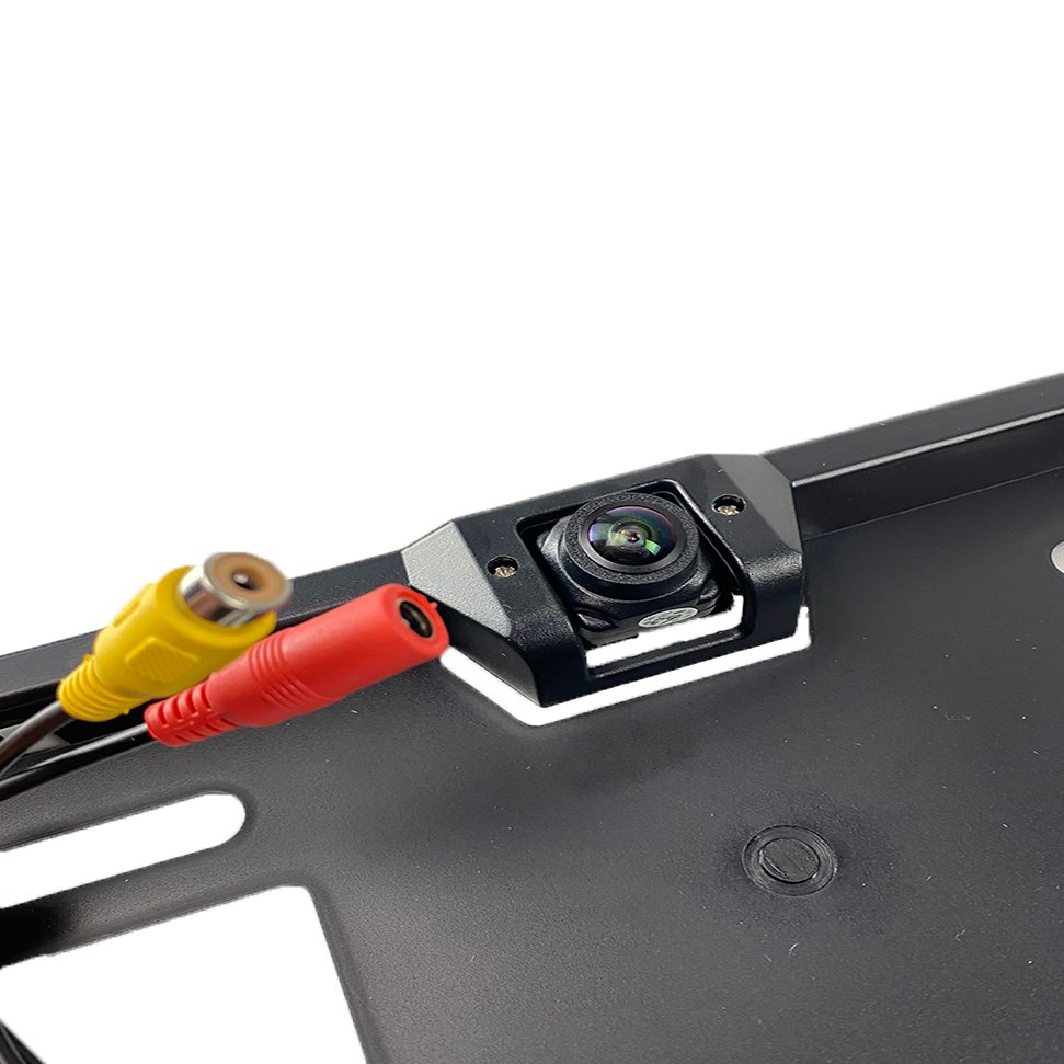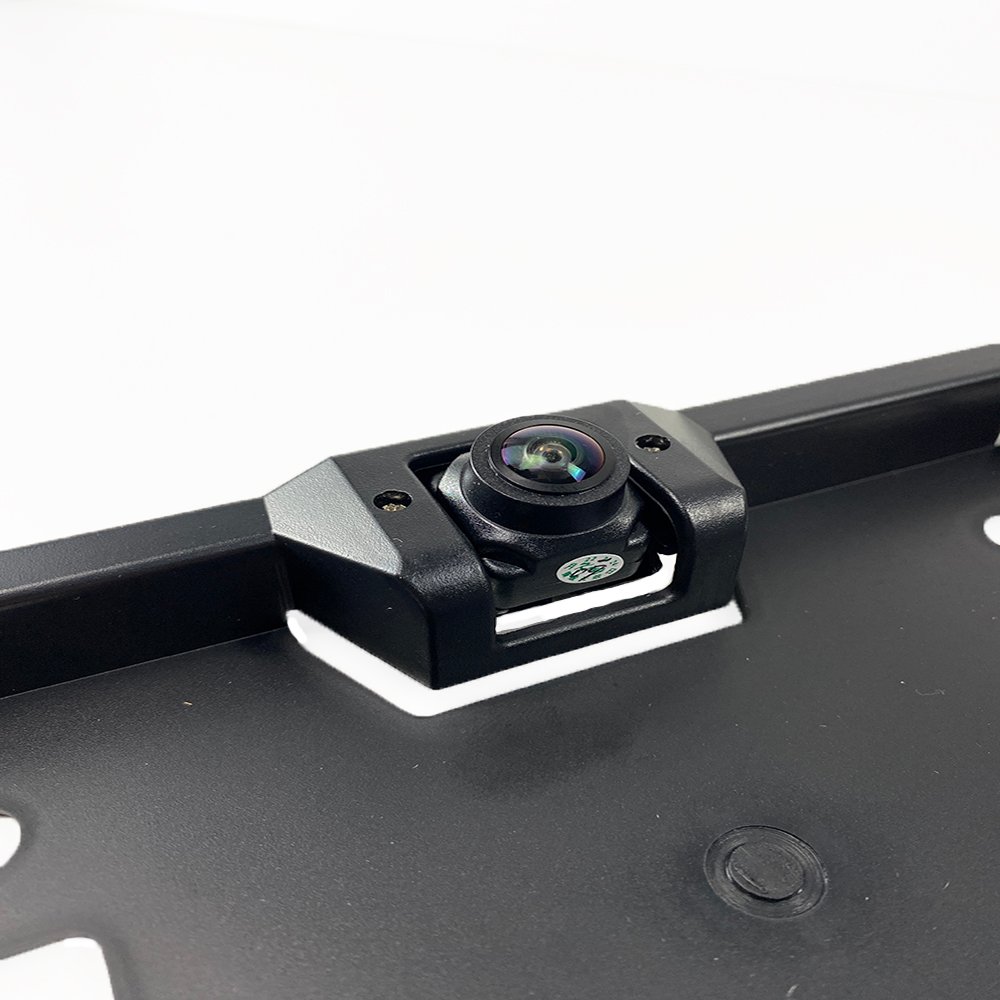 This rear view camera is integrated directly into a European license plate frame, making installation simple and non-invasive.