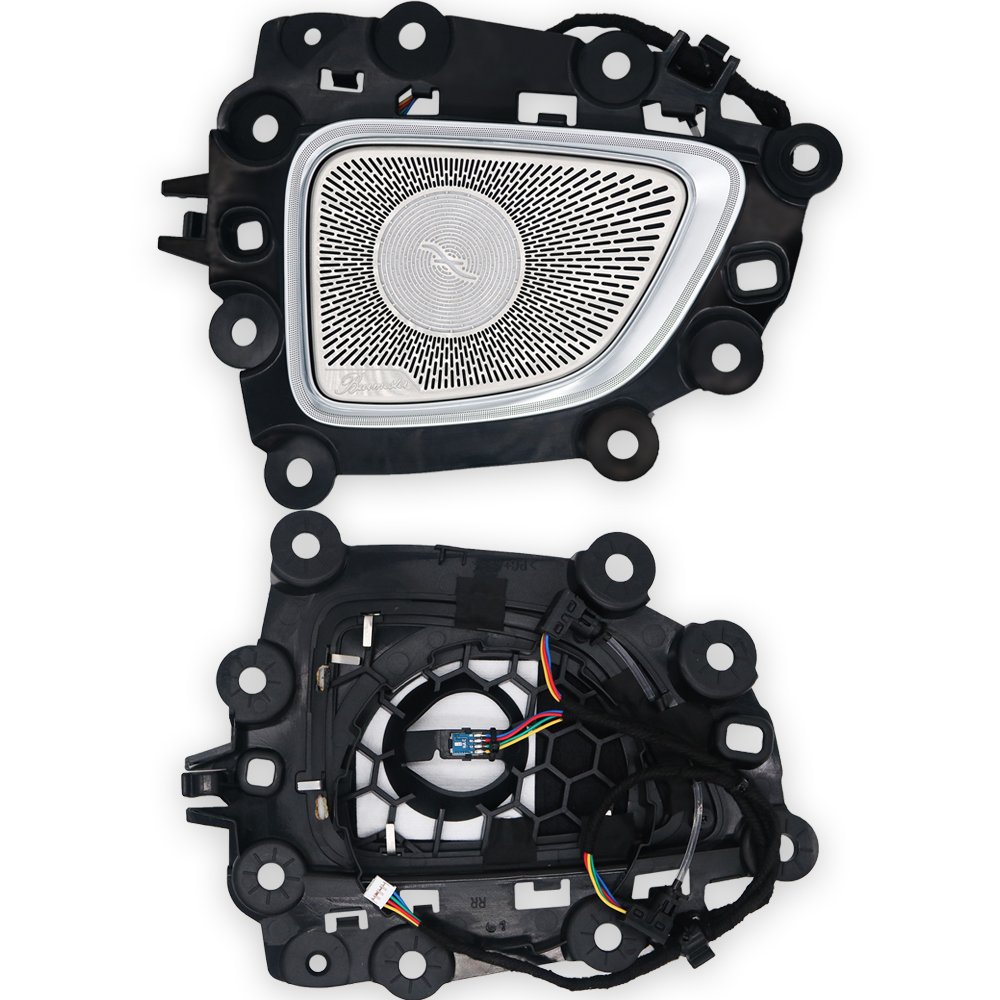 Elevate the cabin of your Mercedes-Benz C-Class with a truly transformative upgrade. These premium midrange door speaker covers are meticulously engineered to replace your factory panels, infusing your vehicle’s interior with a personalized and sophisticated glow. Constructed from brushed stainless steel and featuring fully integrated multicolor LED ambient lighting, these grilles deliver an authentic OEM+ appearance that seamlessly blends with your car’s dashboard and door panel lighting. Take complete command of your driving atmosphere through the native Mercedes-Benz user interface, selecting from 64 vibrant colors to match your mood or style without any complex coding or aftermarket controllers. This is the definitive plug-and-play solution for drivers who refuse to compromise on luxury, quality, or seamless integration.
