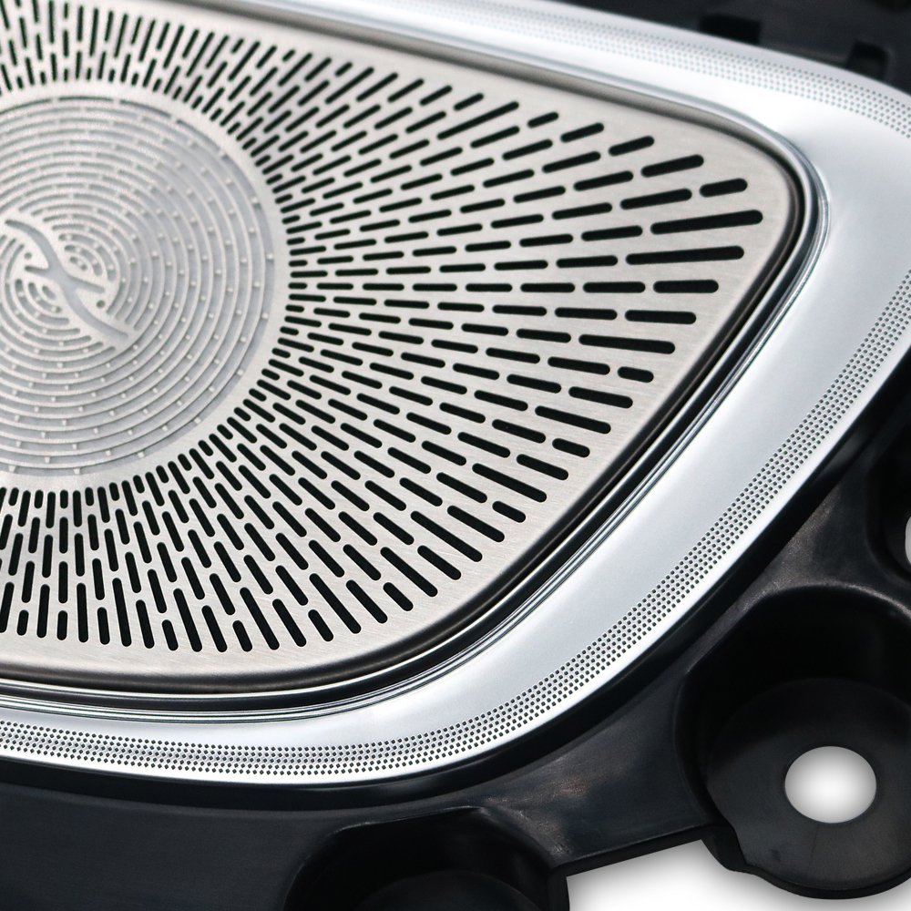 Upgrade your Mercedes-Benz C-Class W206 interior with premium stainless steel midrange speaker covers. Featuring brilliant 64-color LED ambient lighting, these OEM-grade trims integrate seamlessly with your factory controls via the Mercedes menu. This plug-and-play set delivers a custom, luxury upgrade with flawless fitment for all four doors, enhancing your interior’s ambiance without any coding required.