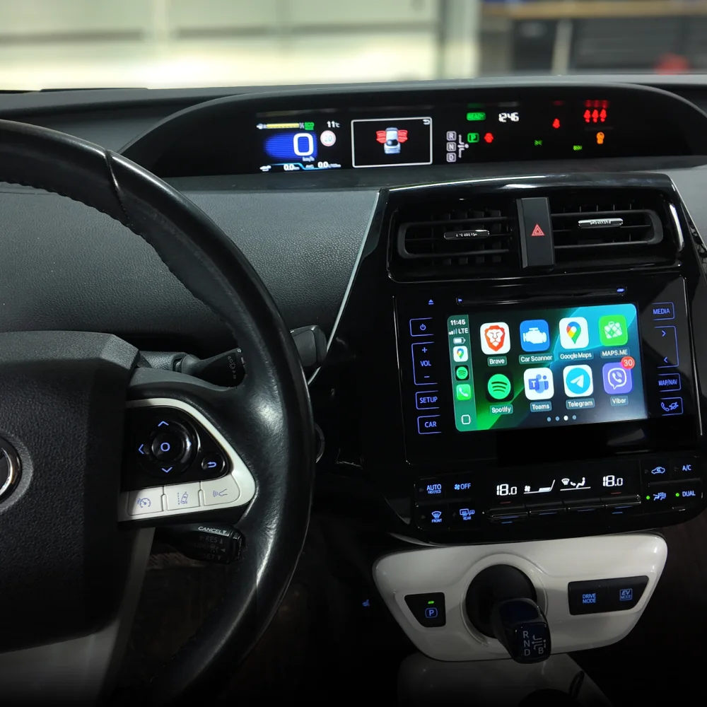 By combining modern automotive infotainment technology with full OEM compatibility, this Toyota Prius CarPlay and Android Auto retrofit enhances navigation accuracy, connectivity, and everyday driving convenience while maintaining the original look, functionality, and efficiency of the Prius interior. Designed for seamless smartphone integration and intuitive operation, it delivers a fully connected driving experience through your factory-installed display.