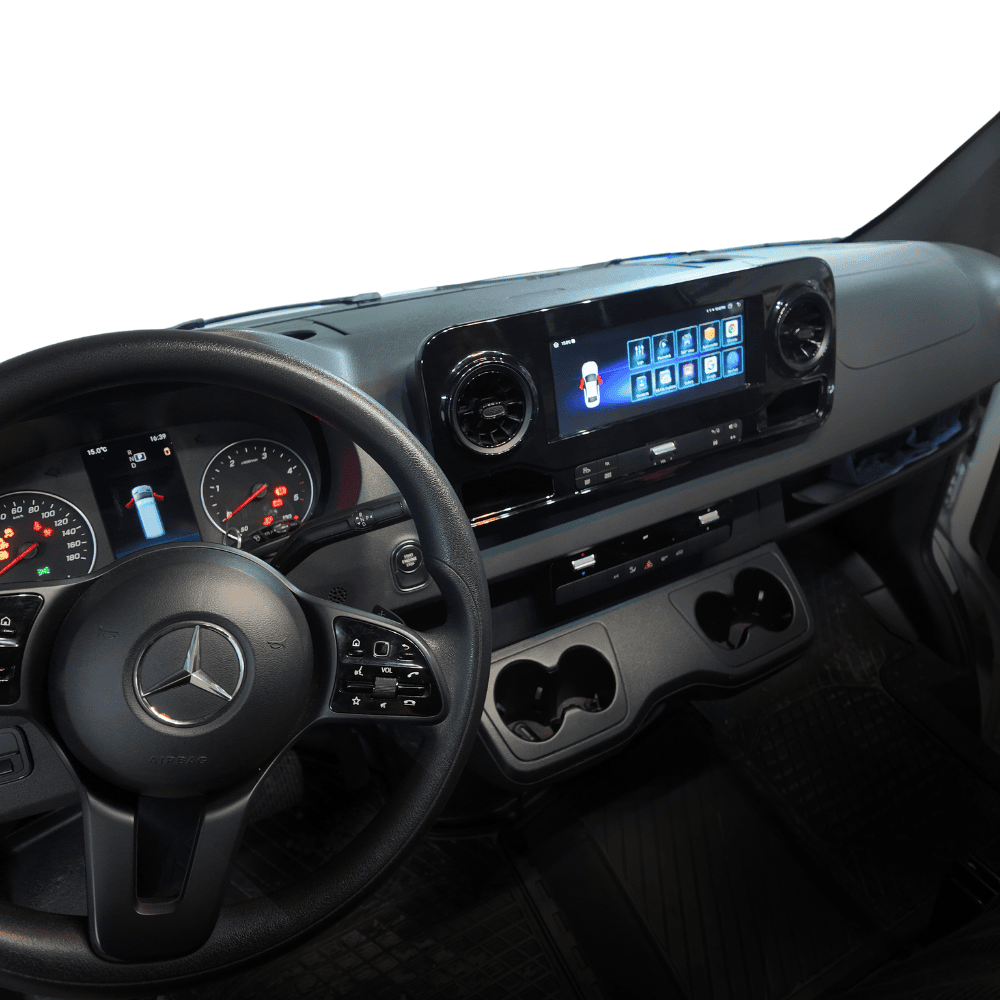 • All factory functions remain operational, including parking sensors, cameras, steering wheel buttons, and rotary knob control