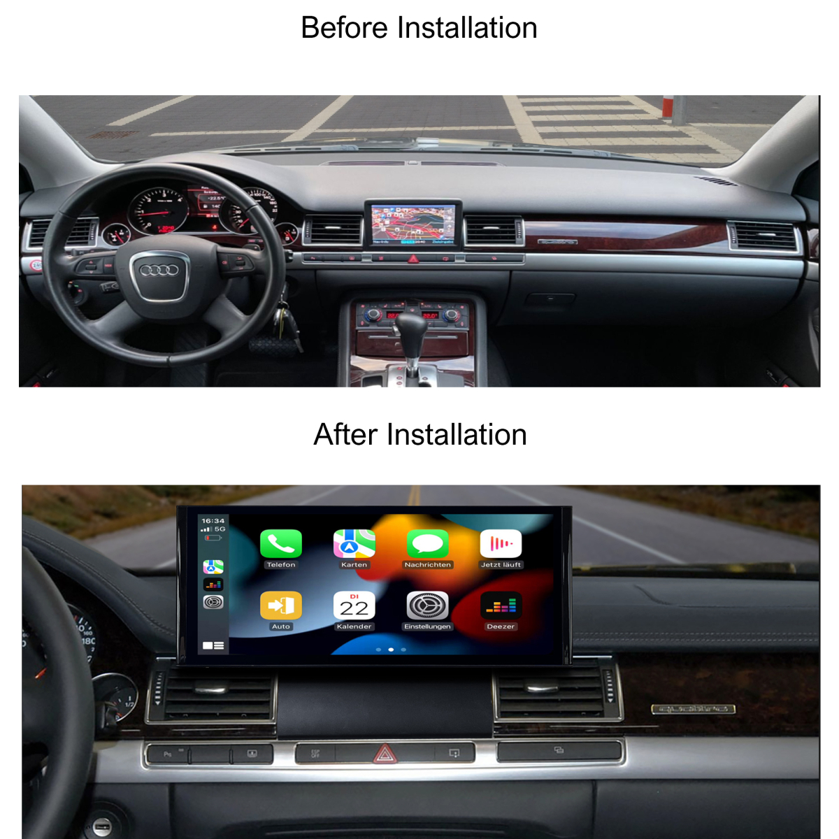 • Fully compatible with original Audi functions: steering wheel buttons, rotary knob, parking sensors.