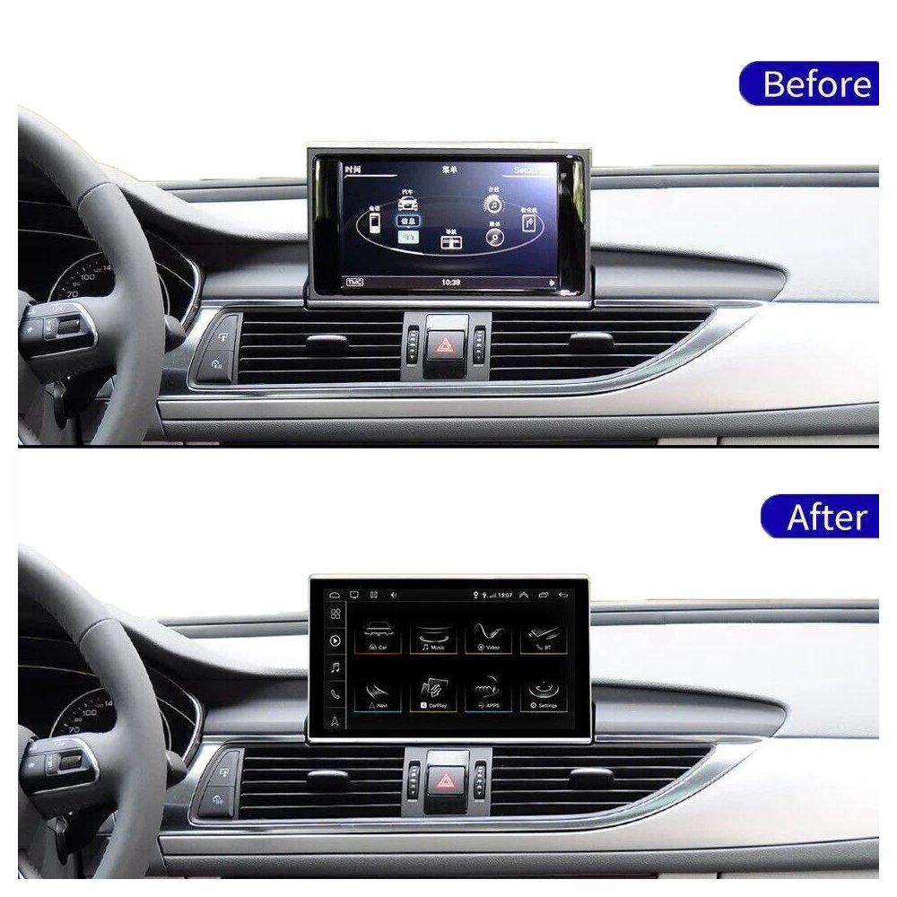 Connect your smartphone wirelessly via Apple CarPlay or Android Auto to access navigation, music, video streaming, and favorite apps. The original Audi menus remain fully operational, and you can control everything using the touchscreen, steering wheel buttons, car knob, or voice commands.