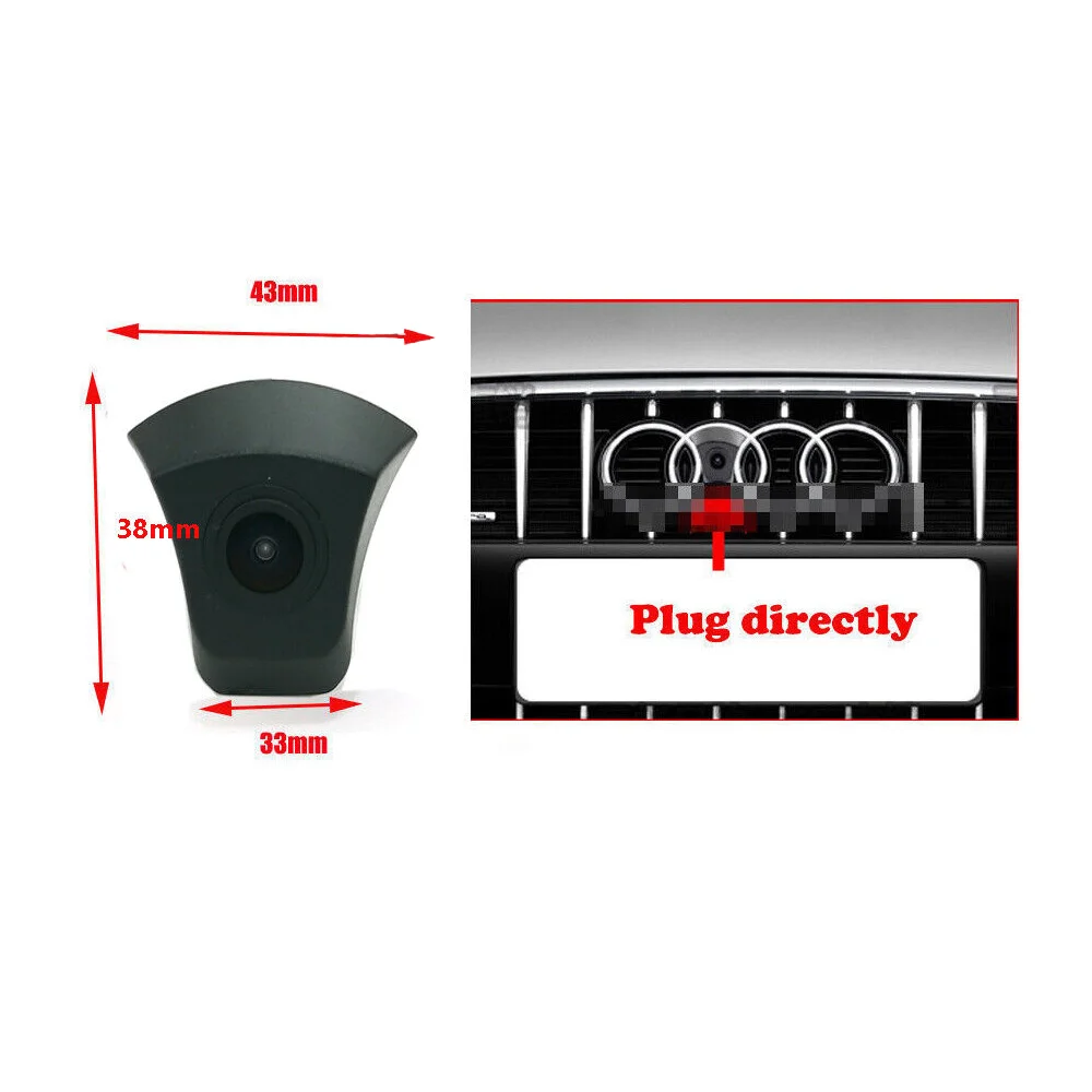 This front view camera is specifically designed to replace the original Audi front logo, ensuring a perfect OEM-style fit without visible modifications.
