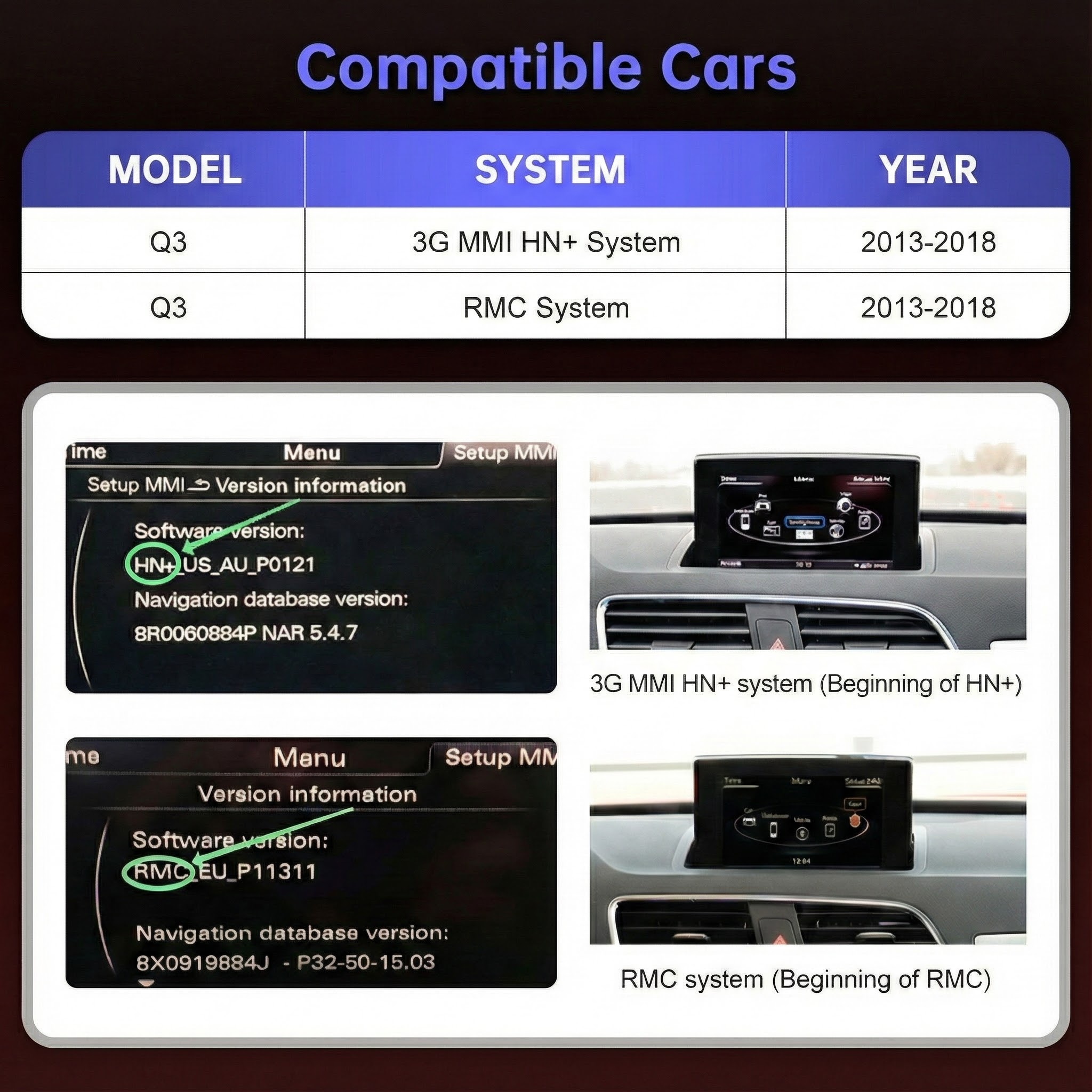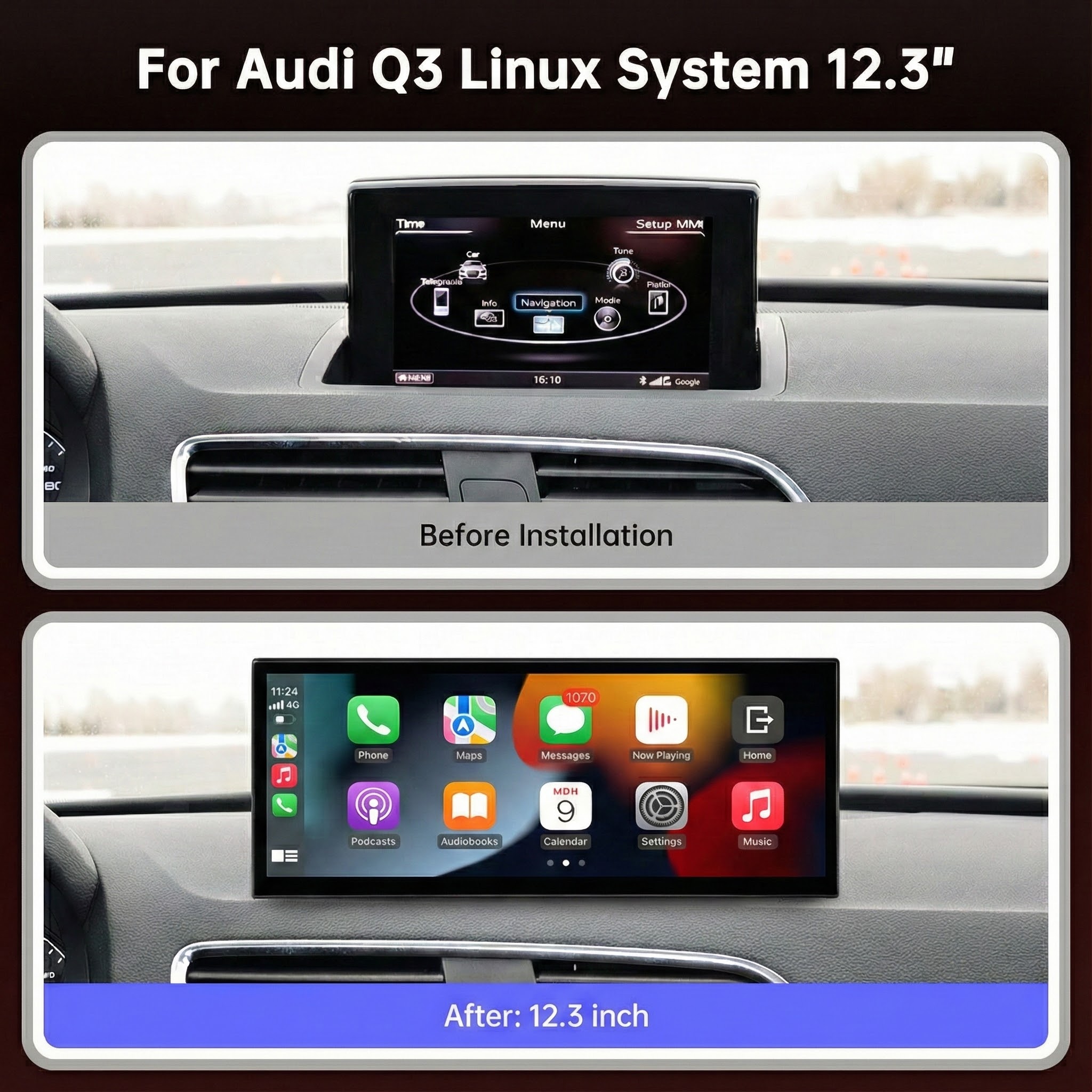Audi Q3 8U / F3 Linux Multimedia Screen 10.25 12.3″ (2011–2018) with Wireless & Wired CarPlay / Android Auto