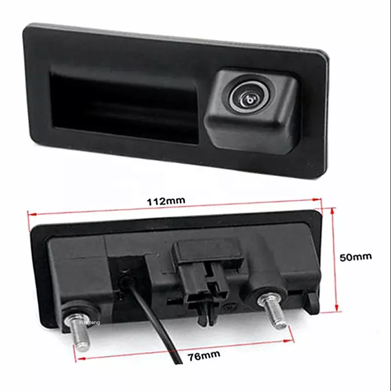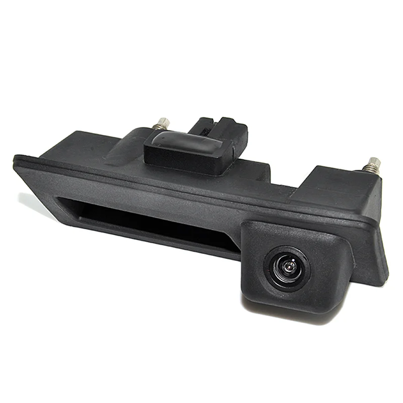 OEM-style hidden trunk handle rear view camera with night vision and wide-angle lens. This aftermarket reverse camera is designed for a factory look and improved visibility when parking.