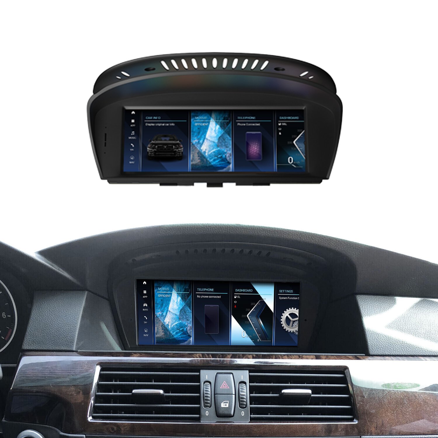 This BMW 5 and 3 Series E60, E90, E92, E93 touchscreen upgrade with Android OS lets you enjoy music streaming, navigation, and many other apps, offering far more features than the original display. You can easily switch between the Android system and the original BMW menu, with access to over 1,000 apps on the new multimedia touchscreen. Please make sure to check your BMW multimedia system version before ordering—if you’re unsure, contact us and we’ll help you choose the correct product.
