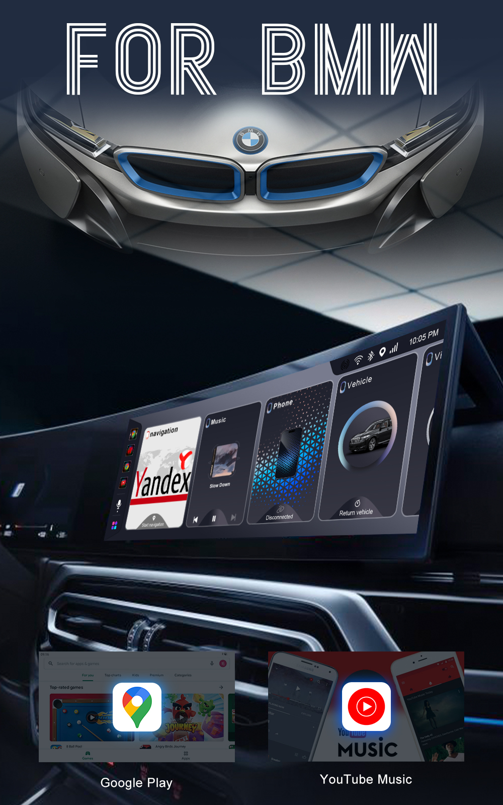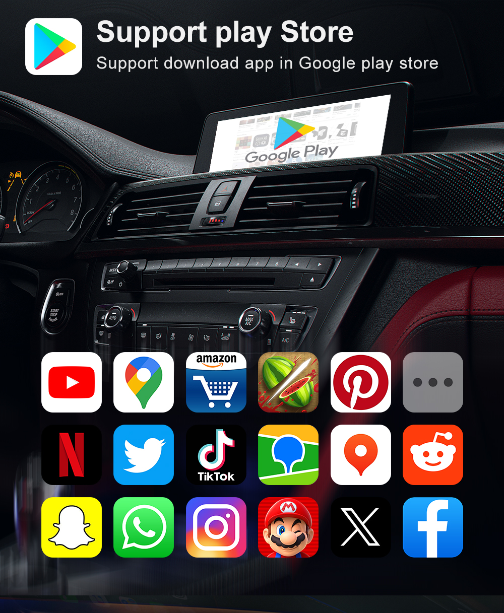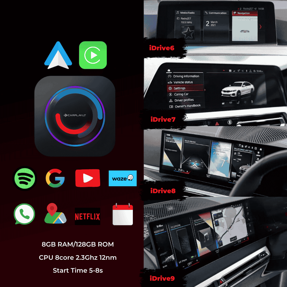 Upgrade your BMW’s infotainment system with the BMW Wireless CarPlay & Android 13 Adapter, compatible with iDrive 6, 7, 8, and 9. This all-in-one multimedia device delivers wireless Apple CarPlay and Android Auto, streaming apps, navigation, and more directly on your car’s display. With built-in SIM card support, TF card storage up to 256GB, and seamless integration with BMW’s OEM controls, it offers a smart, plug-and-play upgrade for your driving experience.