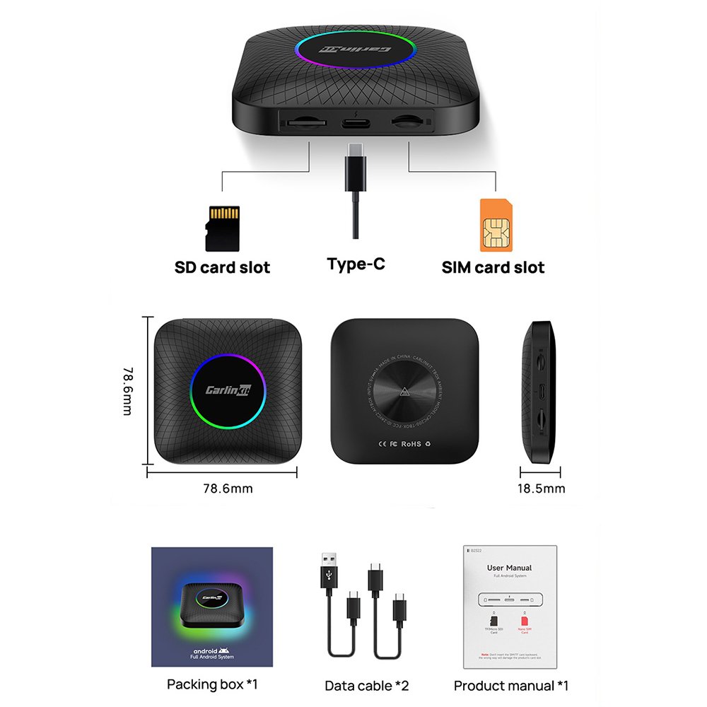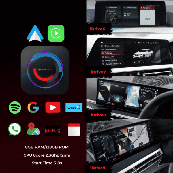 Carlinkit Android 13 Ai Multimedia Box is latest, fastest and most powerful add-on device that allows you to download and use Android apps on your car’s screen much more efficient way than before. This Ai Multimedia Box is the most powerful multimedia – infotainment device, which brings best features from both Apple and Android systems to your car. Connect via hotspot and Watch YouTube, Netflix, or download any navigation app from Google Play store – now everything from your mobile device is in your original car’s screen, with integrated touch, voice and car’s controls.