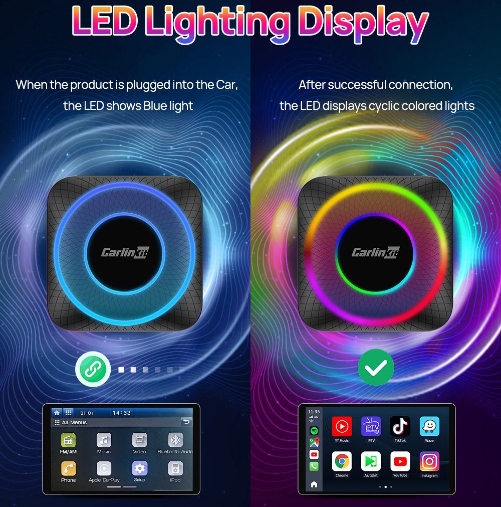 This product will only work in vehicles with factory Apple CarPlay function. For the best experience touchscreen or wireless remote controller is required. Top features: Single USB cable connection. Android Ai Box supports screen mirroring from mobile device.