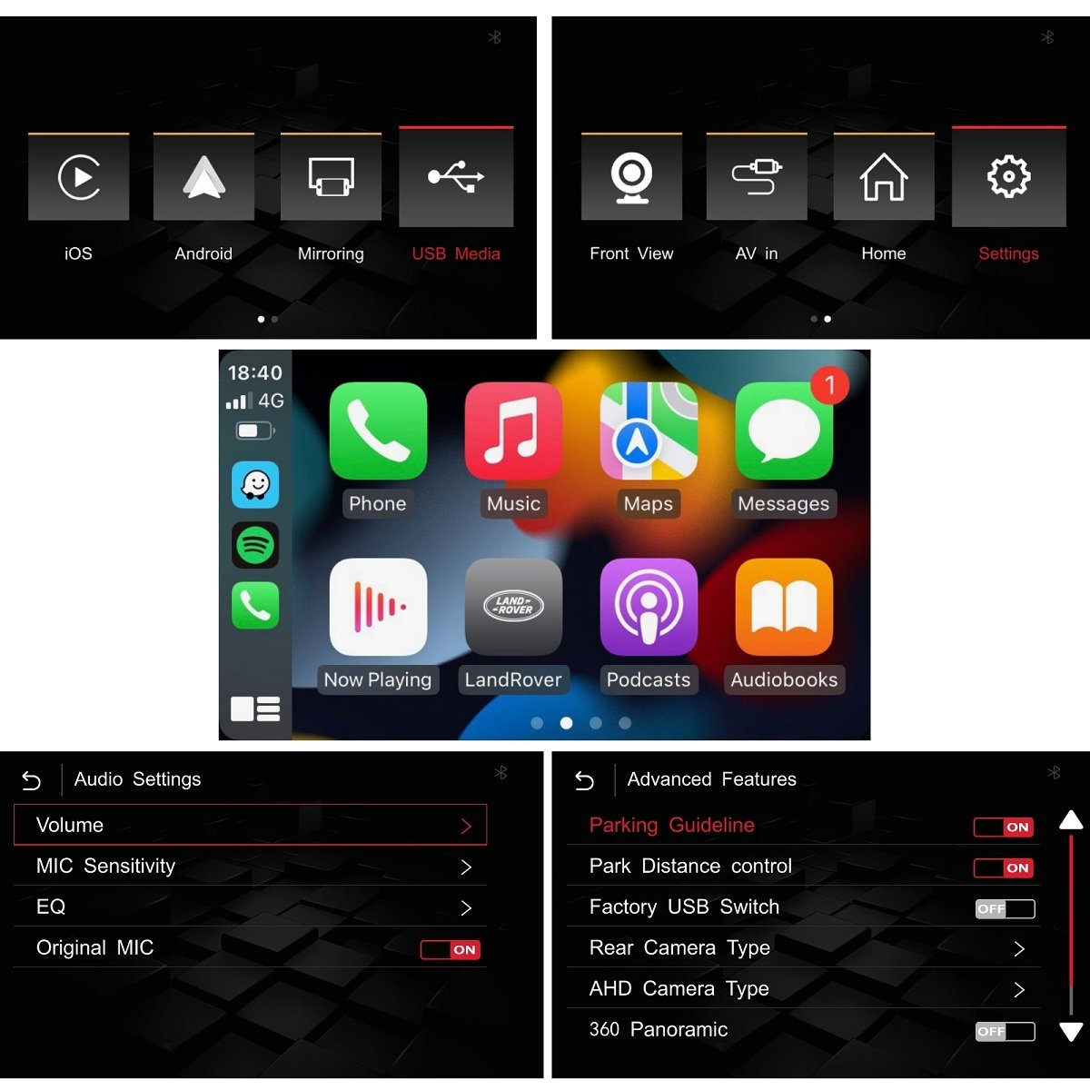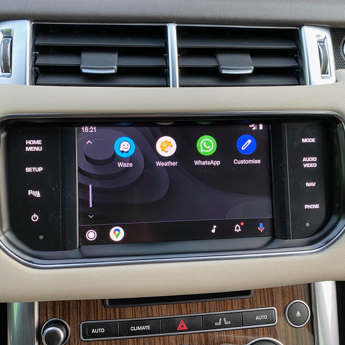 Land Rover Multimedia Upgrade – adds Apple CarPlay and Android Auto while retaining the factory Land Rover display.