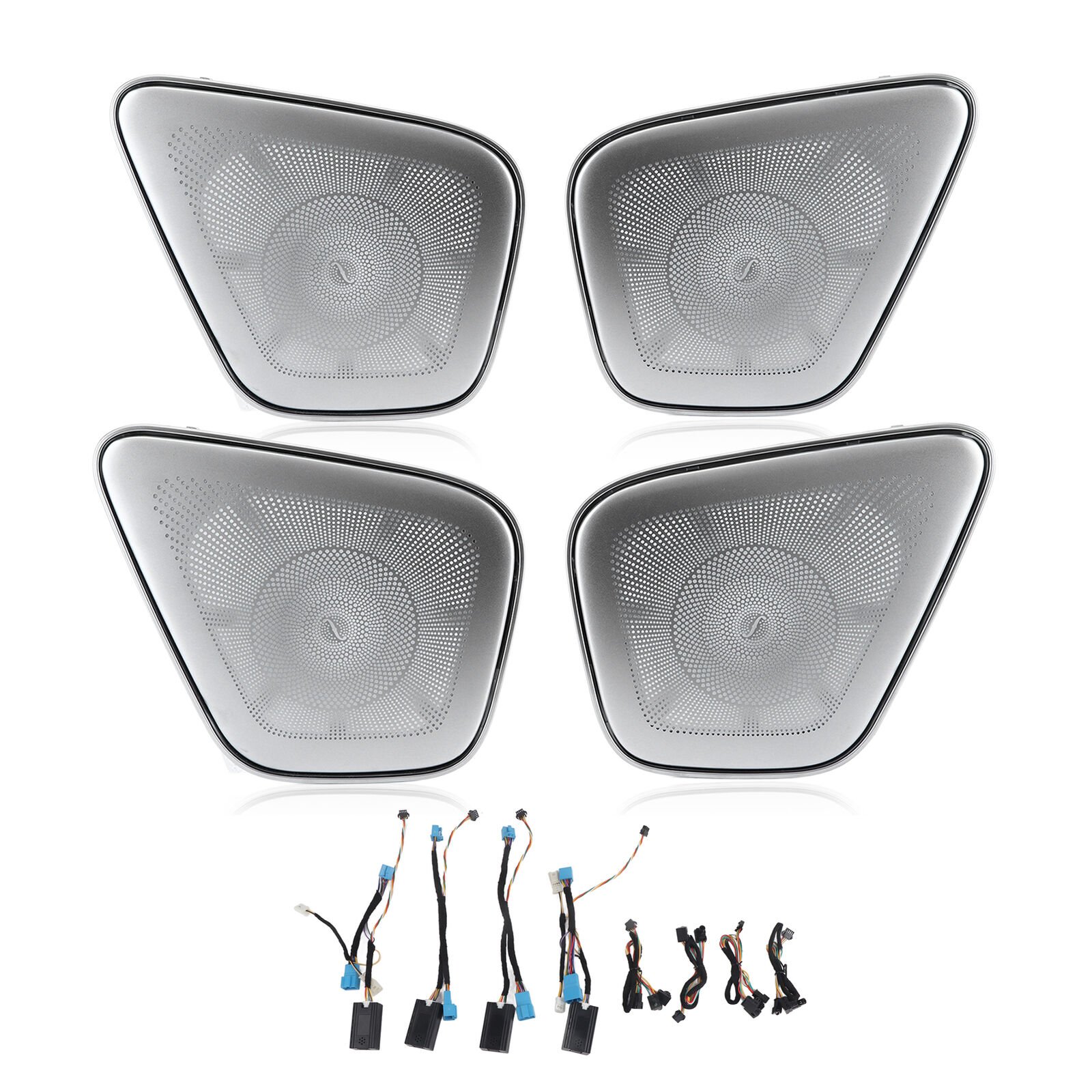 Upgrade your Mercedes-Benz A-Class W177 with our premium LED illuminated mid-range speaker trim covers. Designed to replicate the Burmester style, these stainless steel covers integrate seamlessly with your factory ambient lighting system. Control all 64 colors through your Mercedes menu. Enjoy an OEM-quality, plug-and-play installation with no coding required for a truly luxurious interior upgrade.