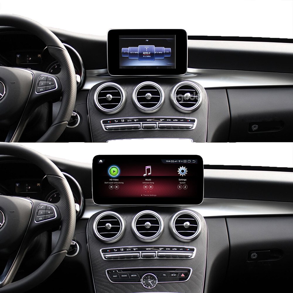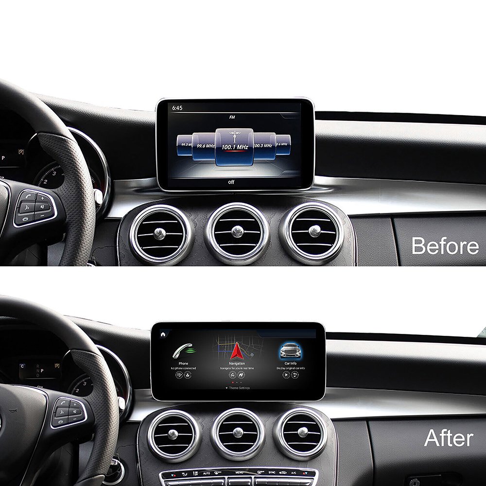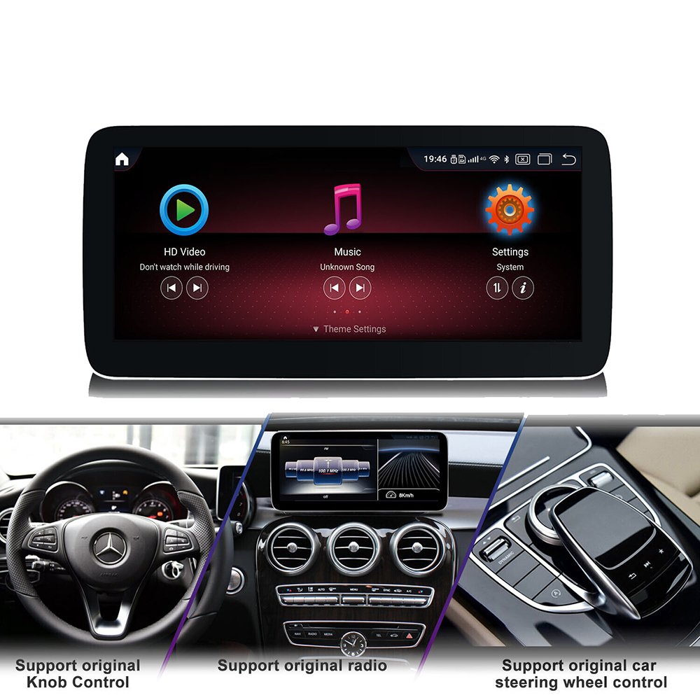 This Mercedes C GLC models Touch screen with Android 13 system allows you to use all your favorite apps, from music streaming, navigation and much more. A lot more functions than your original car screen, you will be able to switch between Android system and Original Mercedes NTG menu. 1000+ apps are available on the new multimedia touchscreen display!
