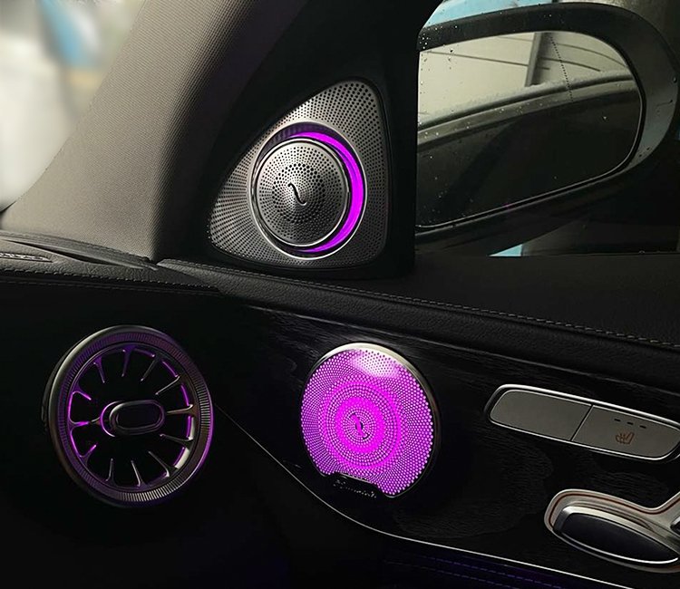 Elevate your Mercedes-Benz GLC-Class (X253) driving experience to a new level of luxury and sophistication with our premium LED ambient rotating tweeter speakers. This innovative upgrade seamlessly blends high-fidelity audio performance with mesmerizing, customizable interior illumination, transforming your cabin into a high-tech sanctuary. Meticulously engineered to meet original equipment manufacturer (OEM) quality standards, these speakers deliver an OEM+ look and feel, enhancing your vehicle’s ambiance without compromising its elegant design. Enjoy crystal-clear music enveloped by a beautiful glow that synchronizes perfectly with your car’s existing mood lighting system.