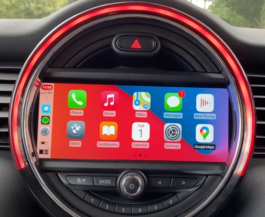 MINI iDrive Multimedia Upgrade – adds Apple CarPlay and Android Auto while retaining the factory MINI display.