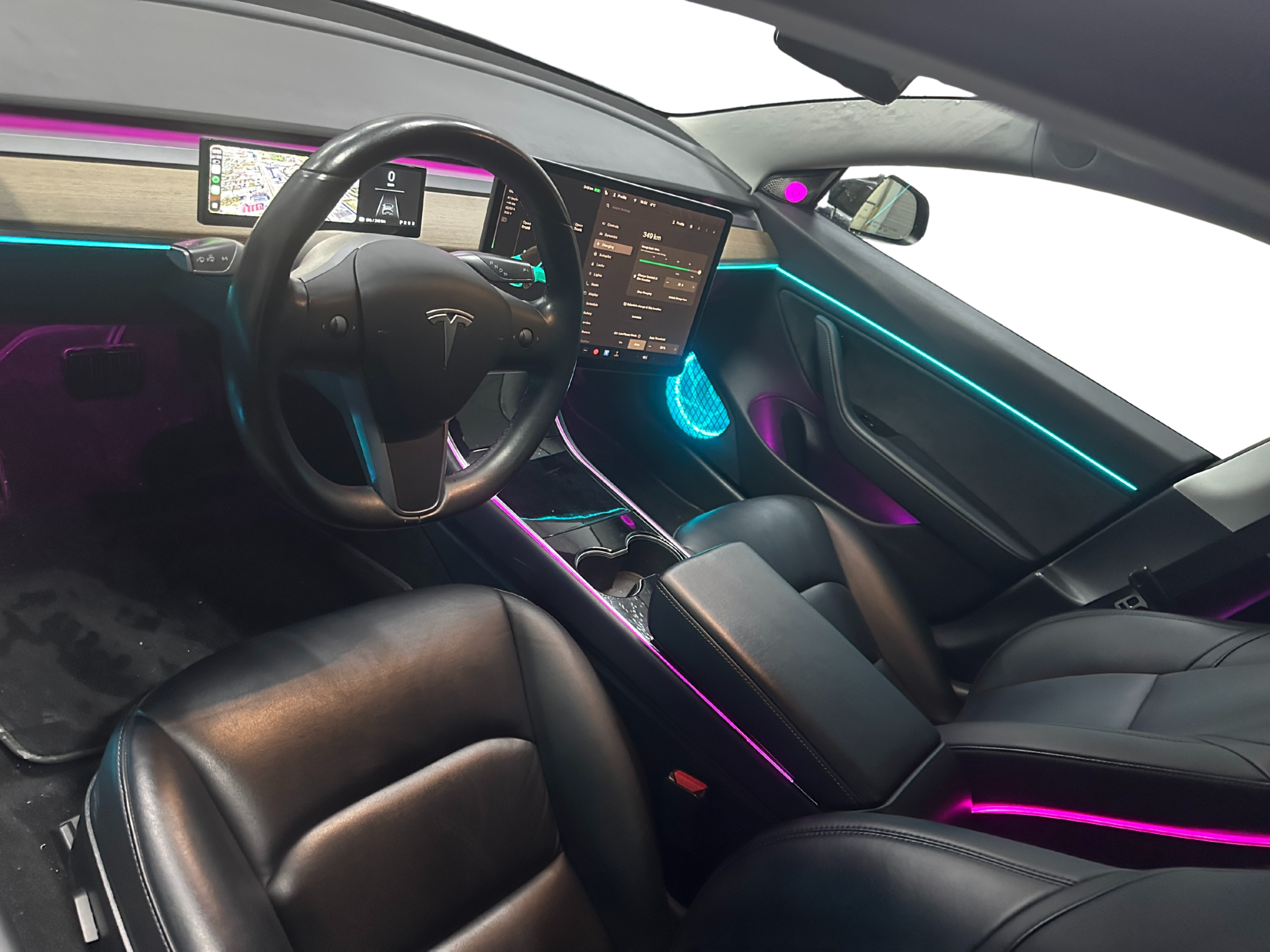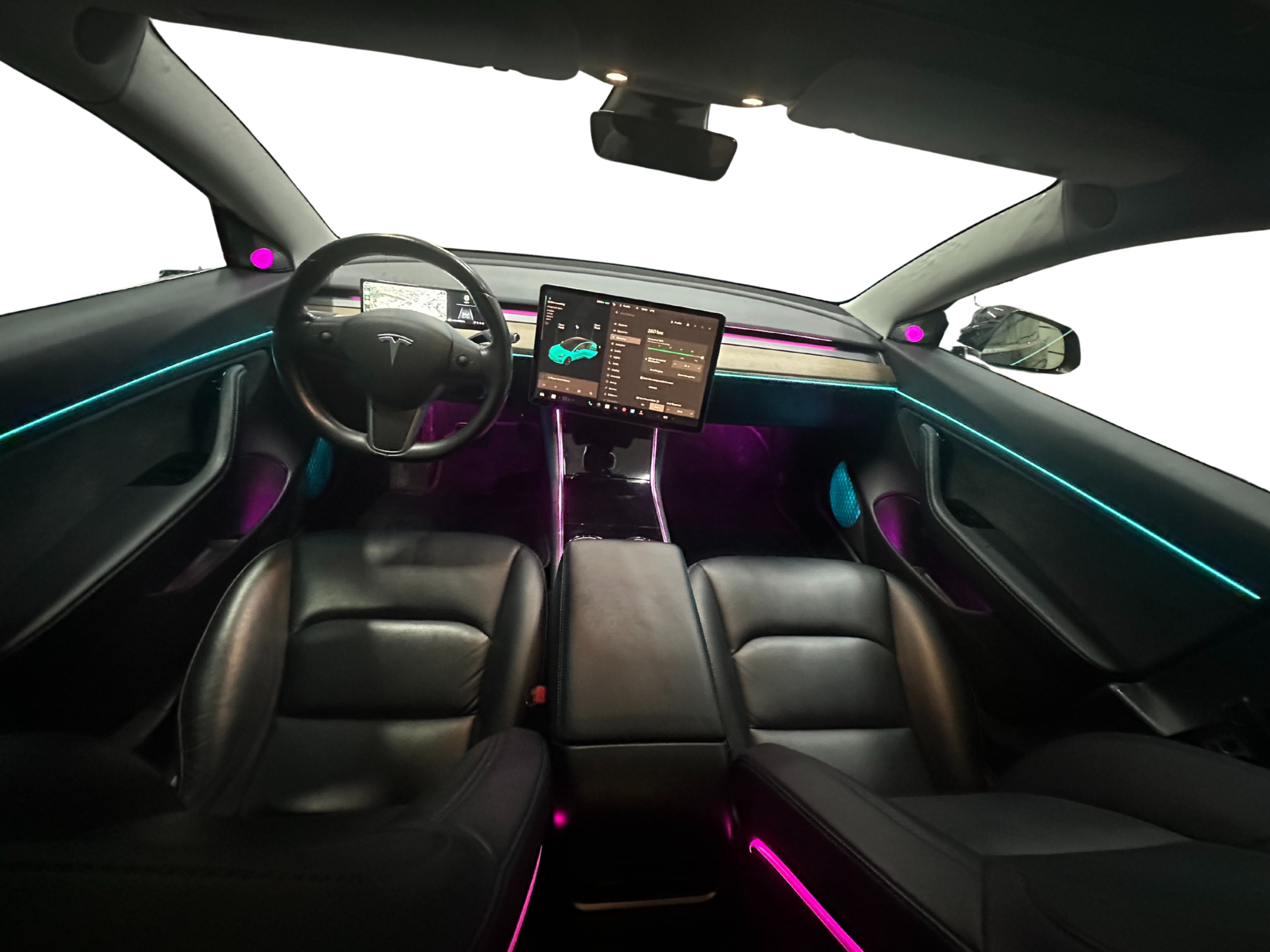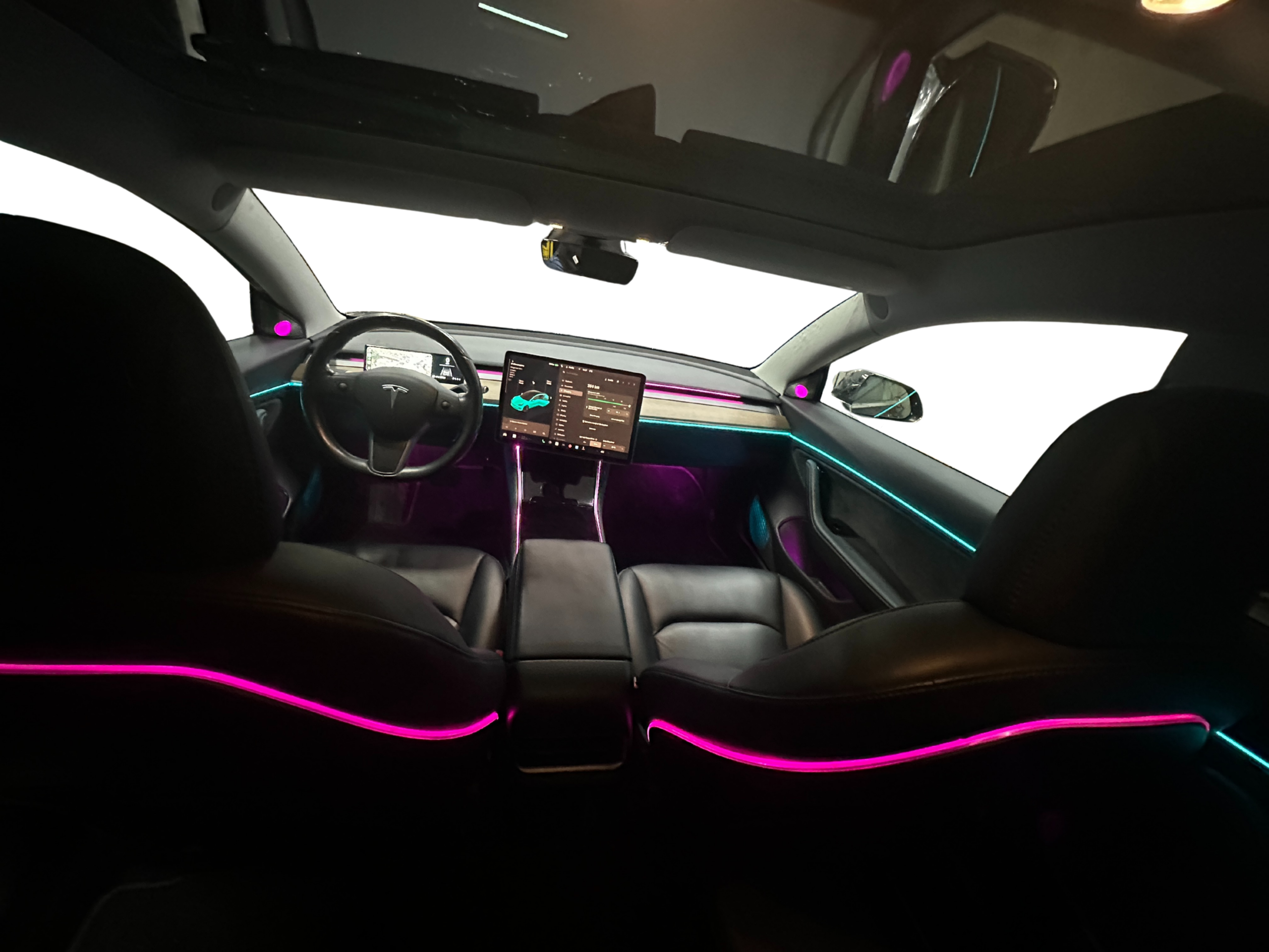 Control is fully integrated through the Tesla central touchscreen display, allowing intuitive adjustment of colors, brightness levels, and lighting modes. The system can synchronize with the original ambient lighting behavior and respond to vehicle status such as parking or driving modes, ensuring a cohesive and balanced visual environment throughout the cabin. This intelligent integration provides a smooth, factory-like user experience that complements the vehicle’s infotainment system and interior design.